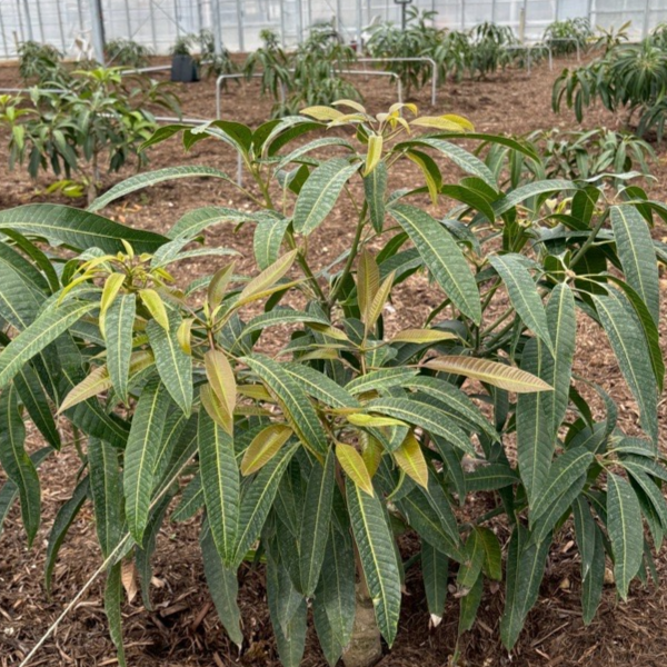 現在、ハウス内ではマンゴーの新芽が芽吹き、日々少しずつ葉を広げながら成長を続けています。