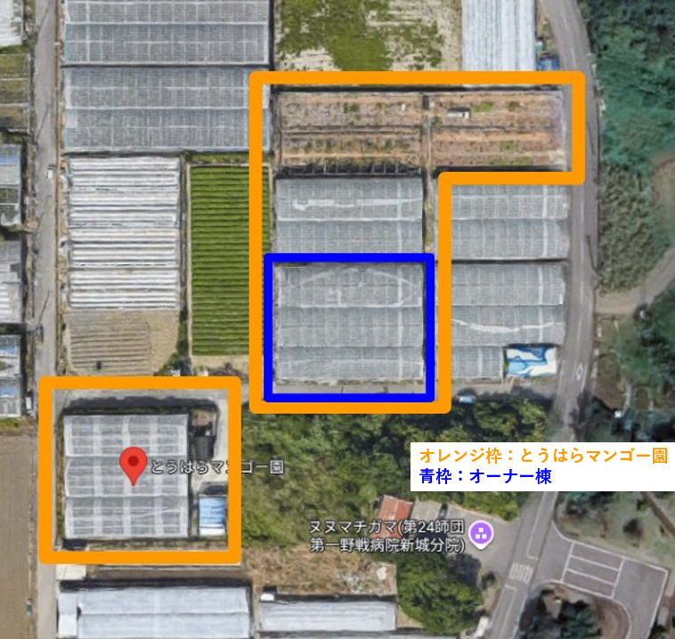 青枠部分が、オーナー様専用のハウスとなります。